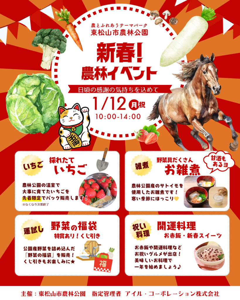 野菜の福袋やお正月を意識した飲食の提供、くじ引きなど楽しみ盛りだくさん!